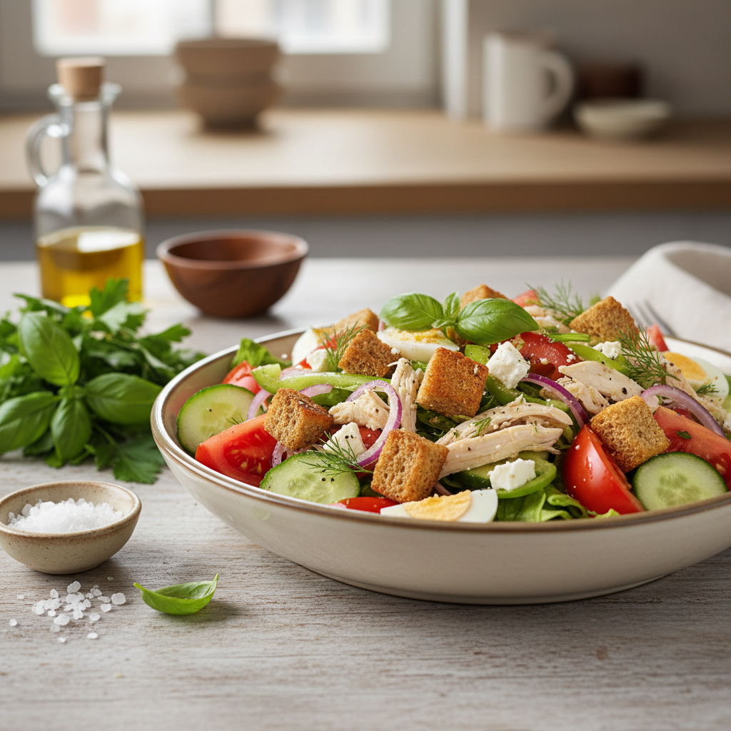 Jeigu ieškote patiekalo, kuris būtų ir greitas, ir skanus, keptos duonos salotos yra puikus pasirinkimas jūsų vakarienei. Šis receptas sujungia sotumą, traškumą ir šviežumą viename dubenyje. Tiek pradedantieji virtuvėje, tiek patyrę kulinarai gali lengvai paruošti šį patiekalą vos per keliolika minučių. Be to, tai puikus būdas panaudoti likusią duoną, suteikiant jai visai naują skonį ir tekstūrą.