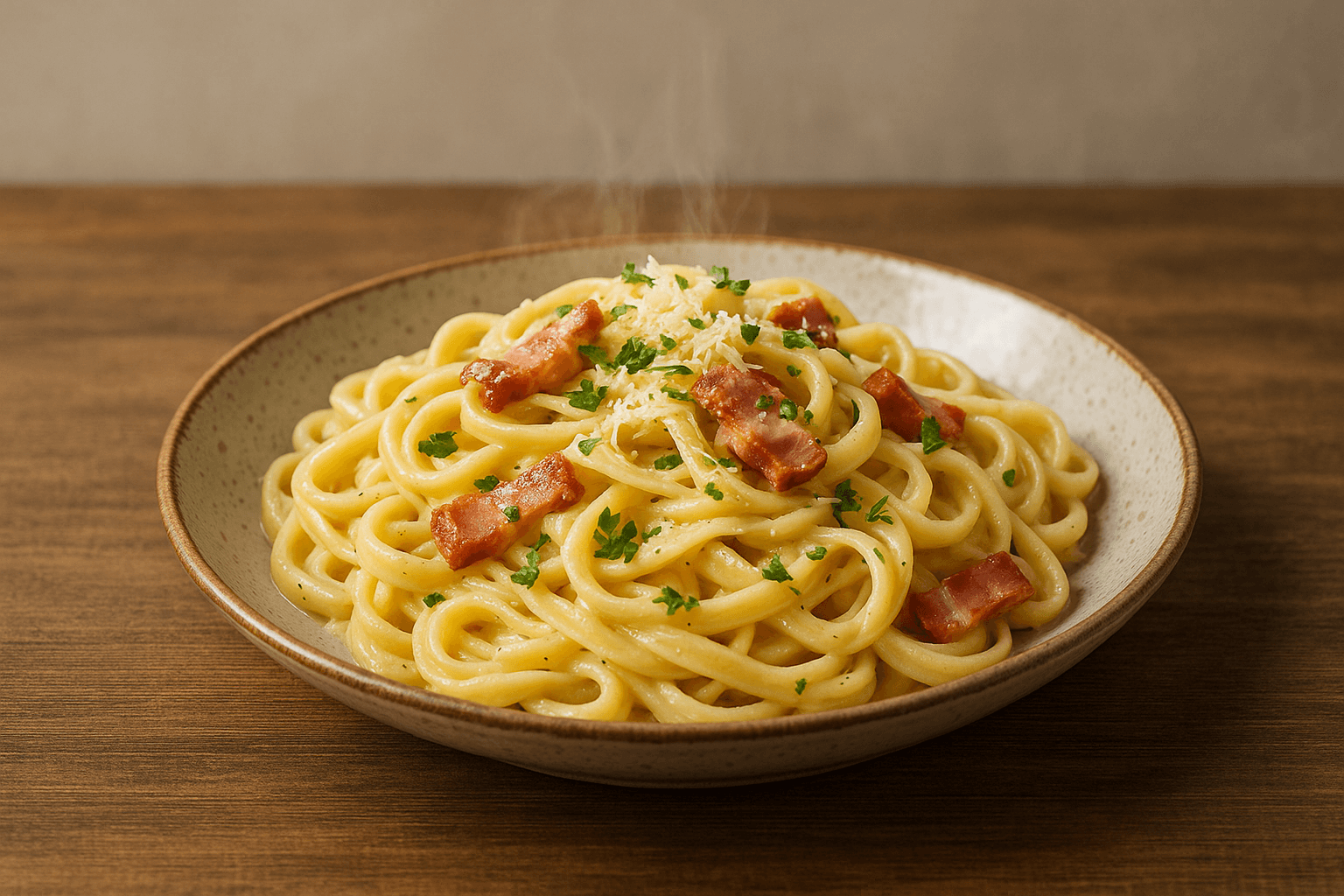 - Krakmolingas makaronų vanduo – natūralus „rišiklis“, padedantis sukurti šilkinę tekstūrą be miltų.