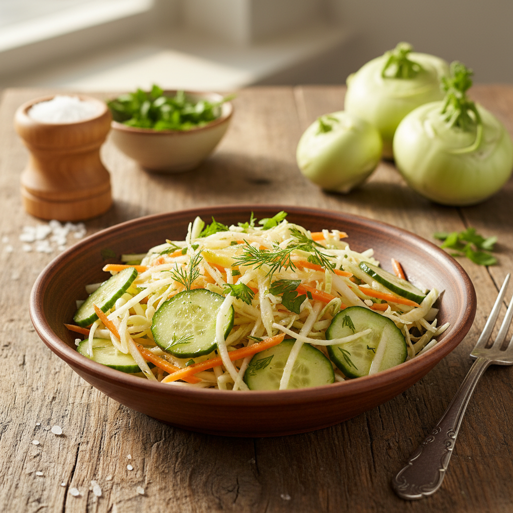 Šiltomis vasaros dienomis dažnam norisi lengvų, gaivių ir sveikų patiekalų, kurie neapsunkintų organizmo, bet kartu suteiktų energijos aktyviai dienai. Vienas tokių pasirinkimų – kaliaropių salotos. Kaliaropė – nepelnytai pamiršta, bet itin vertinga daržovė, kuri suteikia salotoms ypatingo traškumo ir švelnaus skonio. Šis receptas puikiai tinka tiek pietums, tiek vakarienei, o svarbiausia – jį lengva pritaikyti pagal savo skonį.