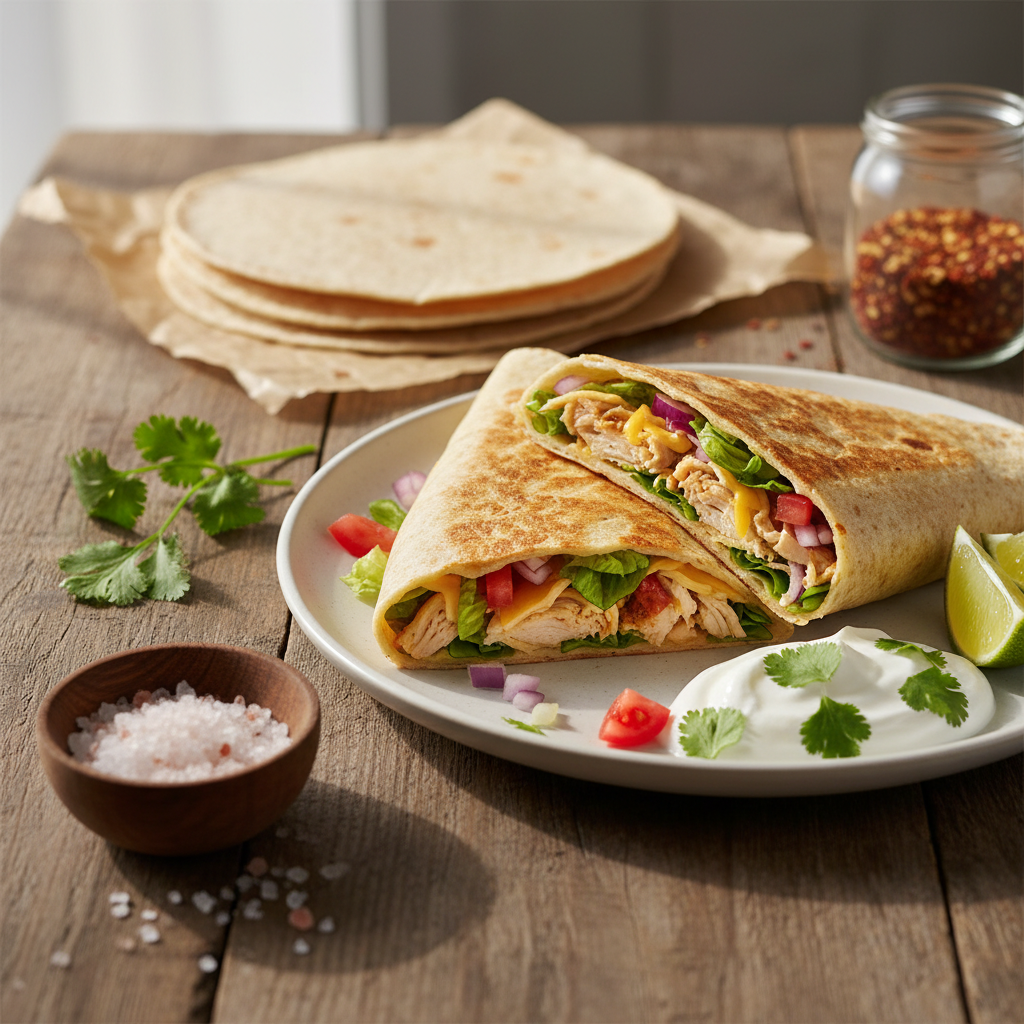 - Šildykite tinkamai: jei naudojate paruoštas tortilijas, prieš įdarą trumpai pašildykite jas keptuvėje arba orkaitėje – jos taps elastingesnės ir nelūžinės.