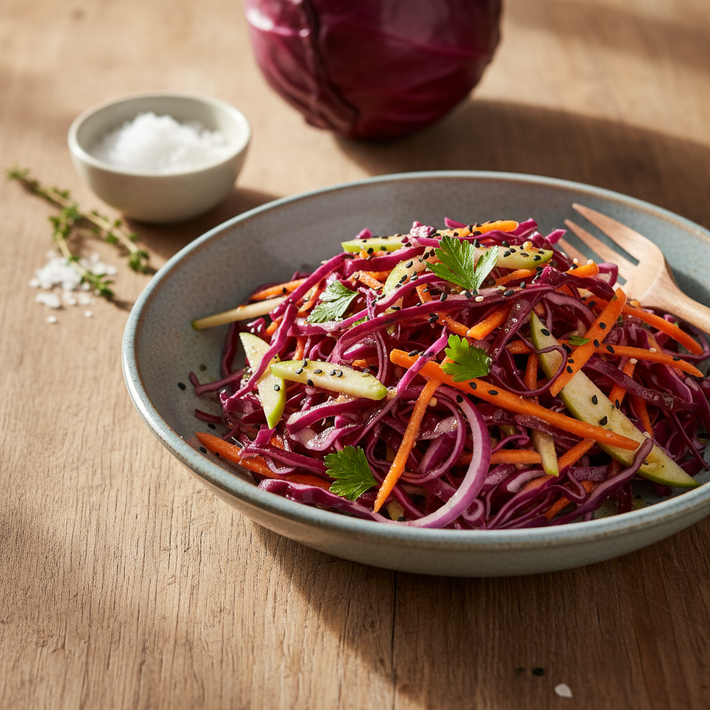 Raudonųjų kopūstų salotos – tai vienas iš tų patiekalų, kuris sužavi savo paprastumu, spalvingumu ir gaivumu. Dažnai raudonieji kopūstai nepelnytai lieka užmarštyje, nors jie yra itin maistingi, lengvi ir puikiai dera su įvairiais ingredientais. Šios salotos tinka tiek prie pagrindinių patiekalų, tiek kaip sveikas, vitaminų kupinas valgis pietums ar vakarienei. Be to, jų žvilganti violetinė spalva džiugina akis ir suteikia lėkštei išskirtinumo.