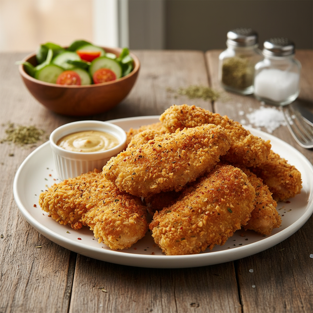 Norint išgauti tą tobulai traškų sluoksnį, labai svarbu teisinga paniravimo tvarka. Galite naudoti klasikinį miltai – kiaušinis – džiūvėsėliai principą arba pabandyti kūrybiškesnį variantą su kukurūzų dribsniais. Jei renkatės kukurūzų dribsnius, juos sutrinkite iki vidutinio smulkumo, kad liktų tekstūros.
