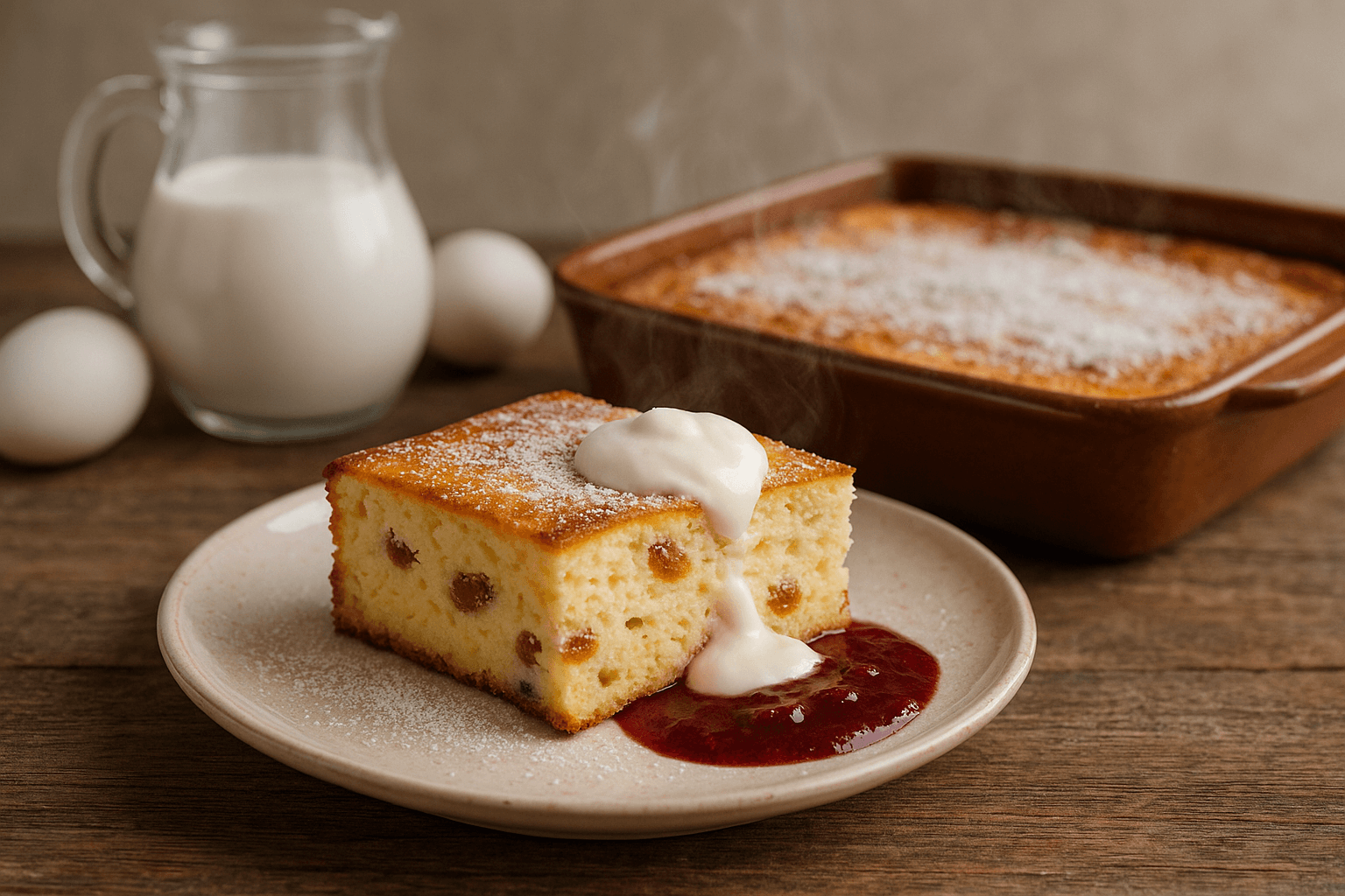 1. Manų paruošimas: manų kruopas užpilkite šiltu pienu ir palikite brinkti 15–20 minučių. Tai užtikrins, kad apkepas būtų purus, o ne sausas.